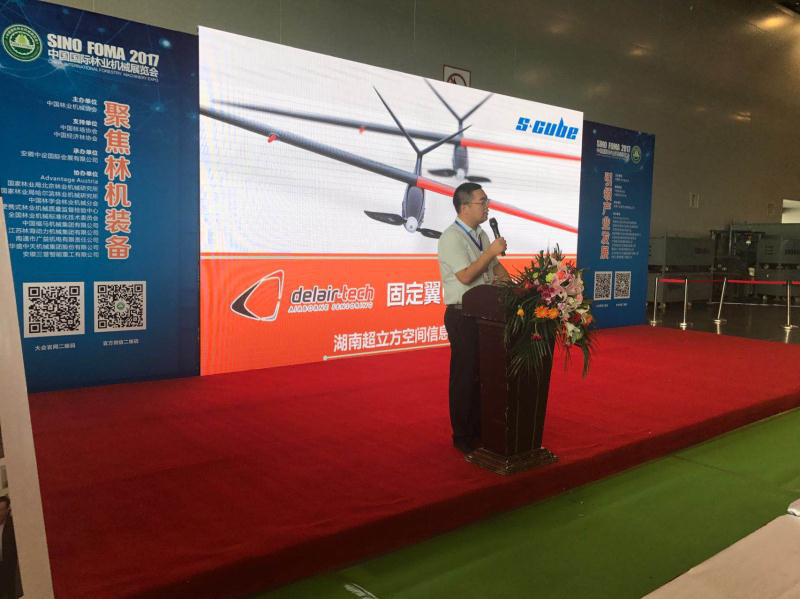 超立方總經(jīng)理王大威攜明星產(chǎn)品固定翼無(wú)人機(jī)發(fā)表演講