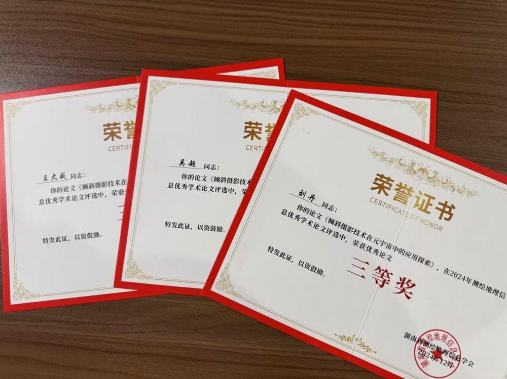同時(shí),在本次大會(huì)上還頒發(fā)了2024年測繪地理信息優(yōu)秀學(xué)術(shù)論文獎(jiǎng),湖南超立方空間信息技術(shù)有限公司的王大威、吳超、劉丹三位優(yōu)秀工作者,以論文《傾斜攝影技術(shù)在元宇宙中的應(yīng)用探索》榮獲2024年測繪地理信息優(yōu)秀學(xué)術(shù)論文三等獎(jiǎng)。