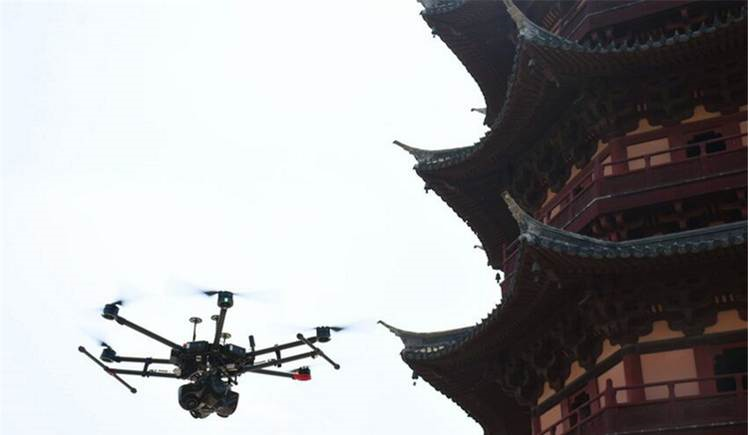 同時(shí)利用多旋翼無人機(jī)搭載SONY全畫幅單反相機(jī)進(jìn)行掃描“盲區(qū)”的近距離、正視影像采集。